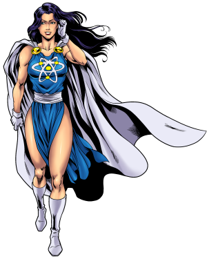 Atomik Bombshell can generate radioactive energy, she can manipulate it as well as absorb it. When she loses emotional control she emits deadly radiation. However, she can also reabsorb 100% of the radiation. She can fire energy blasts from her hands and has limited flight ability.