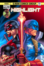 After his arrival into the G-Man’s universe, Highlight must find help for a man tormented by multiple versions of himself. Simon N. Kirby arranged a meeting with the Red Halo to help Highlight find the answers, assembling the League of the Minds selected Detectives from different corners of the created realities, but will they be enough to save the Multiversal-Man? Plus continuing the team-up story of Joe Dragon and Sgt. Flag as they venture through the perilous jungles outside Beringan city to save congresswoman Sonaya. All new G-man Action all the way!