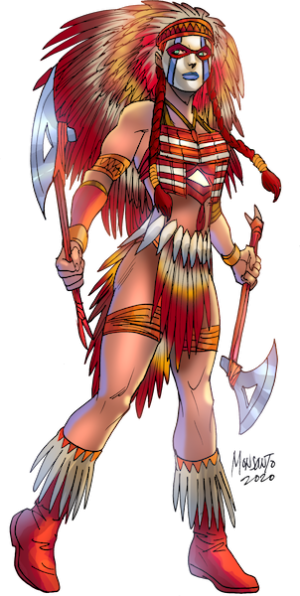 Tracy in 1/32 Cherokee, coupled with her newfound love of Axe throwing made her decide to call herself Pocahontas, the Irish Indian. Tracy is eager to use her skills and abilities to serve her community as its newest resident superhero.