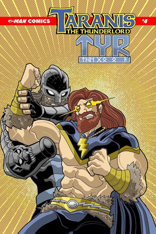 Taranis may be trying to have a moment of peace, but Tyr, the Norse God of War, has something different in mind! Writer/artist Lee Gaston introduces his character Tyr to the world, and fun ensues! With art and colors by Lee himself, with letters (and a script assist) by Taranis creator Eric N. Bennett, this is one for the ages! What’s it take for a god to drink a beer these days?!